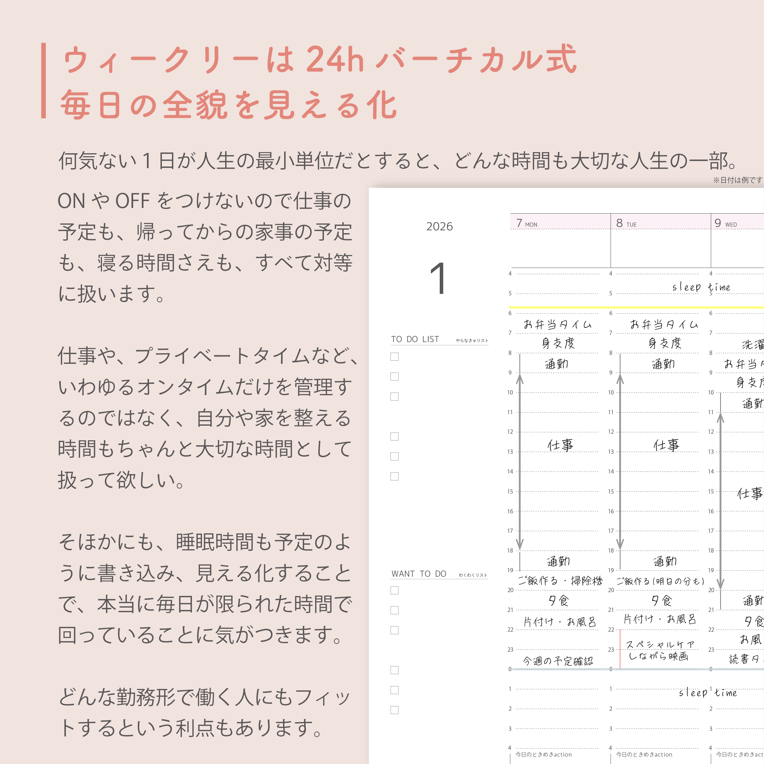 私自身が「ずぼらだけど全部頑張りたい」という欲張りで、それを少しでも楽に実現し毎日やってくる毎日を、少しでもご機嫌で過ごせるようにと思いを込めて作成した手帳です。
