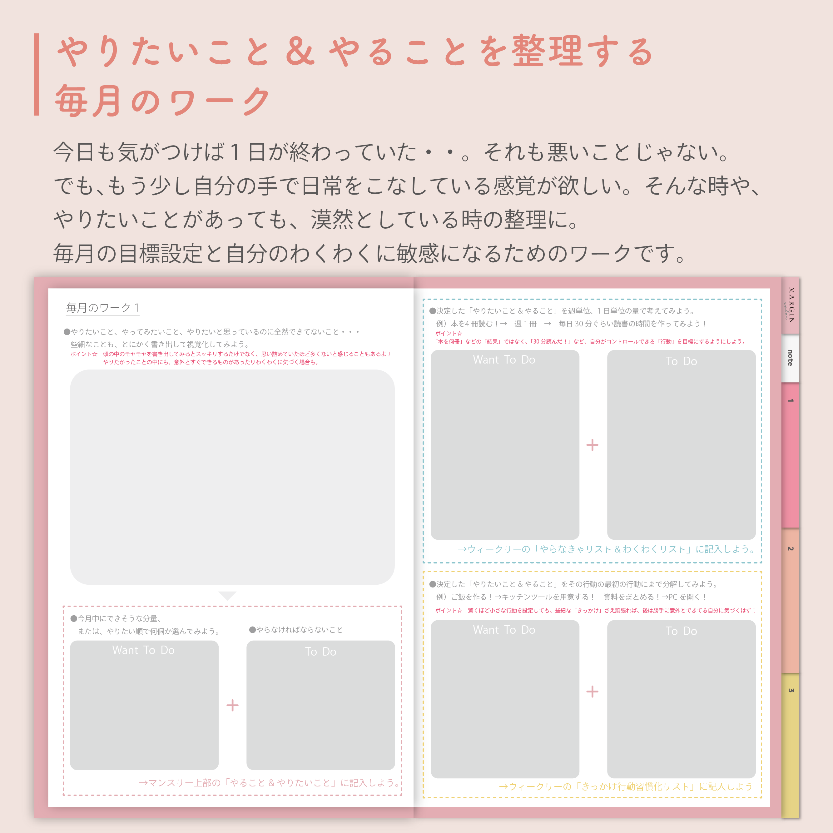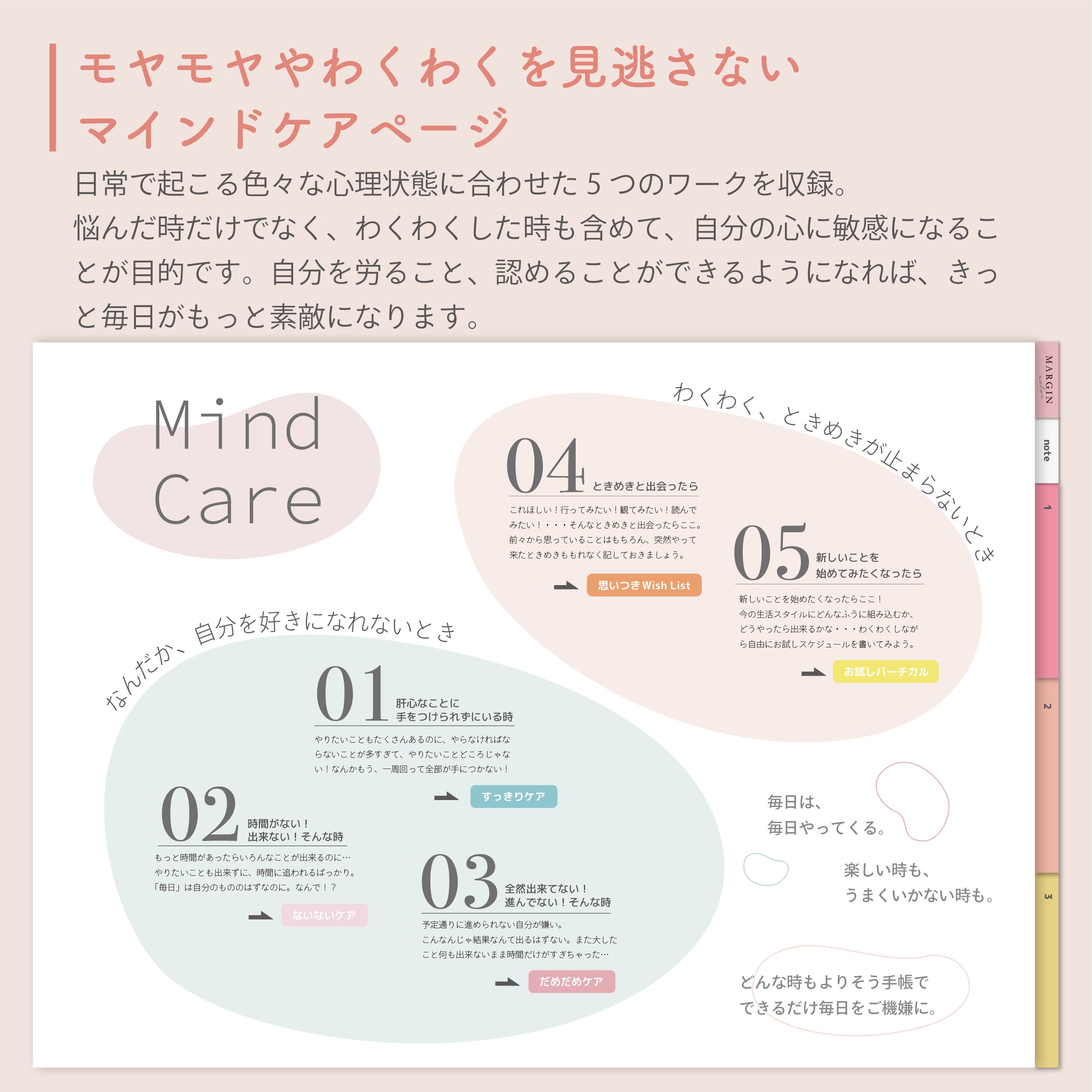 手帳の項目を埋めていくだけで、自然とやる気が出たり、前向きになれる手帳を目指しています。